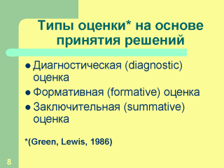 При проведении формативной оценки мы принимаем