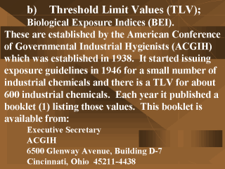 1. ACGIH. 1995-1996 Threshold Limit Values for Chemical Substances and Physical Agents and Biological Exposure Indices.