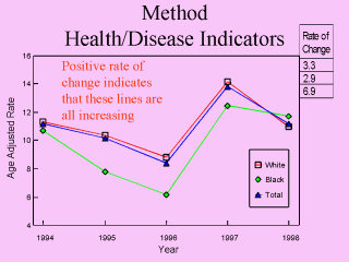indicating that the rate of disease is increasing. A positive rate of change indicates that this disease in increasing, which is not good. A negative rate of change indicates that the disease is decreasing, which is good. |