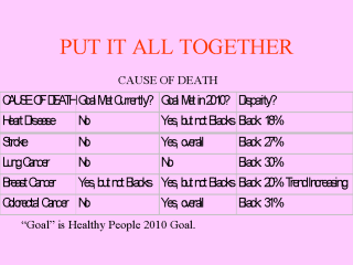 After creating a data table and graphing (charting) every cause of death and disease condition, everything can be summarized on a single page per this example.
