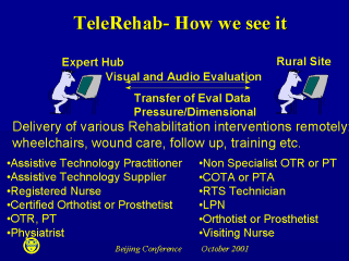 Two groups are loosely defined as the TeleRehab “experts” or specialists and those at TeleRehab personnel “rural” sites. However it is very important to understand that in order for the client to receive the best care the “expert” and the rural individuals are members of a team each of whom has different and equally pertinent information vital to a good outcome.