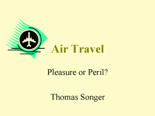 regarding these risks. The author, Thomas Songer, is an assistant professor in the Department of Epidemiology, Graduate School of Public Health, University of Pittsburgh. He is a member of the Center for Injury Research and Control at the University of Pittsburgh and is an irregular airline flyer.Related Internet Links: -Air Travel and Health. House of Lords, Select Committee on Science and Technology Fifth Report. (At WEB) -Health Physics; November 2000 issue, abstracts online |