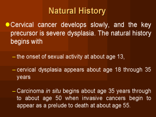 develop between 18 – 35 years whereas 92% of cervical cancers appear between ages 35 and