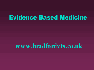 | Taken from www.bradfordvts.co.uk Bradford VTS Web Pages for General Practice ONLINE RESOURCES Non-clinical Tutorials for GP Registrars EVIDENCE BASED MEDICINE (EBM) |