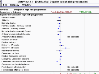 The summary odds-ratio diagram for all of the comparisons and outcomes looked at in the systematic review. Double click on a comparison/outcome to display the detailed odds-ratio diagram.