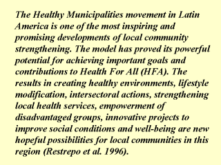 community organizations to encourage and facilitate the healthy municipalities movement in