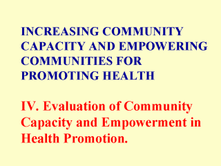 of this lecture? The evaluation of CC and empowerment processes is as complex and difficult as is the evaluation of any socio-political interventions. This subject has been and continues to be the focus of debates in fields concerned with human development. |