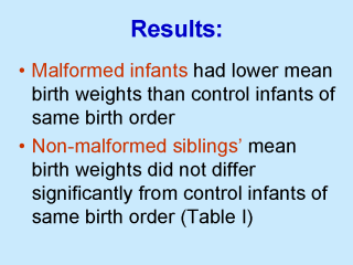 mean birth weights than infants of same birth order in families with no birth defects, on