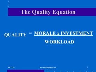 disruption and dedication to the job. Management are interested in the workforce and plentifully in evidence on the shop floor. Investment is about the buildings and plant-clean, well maintained and serviced, up to date, well ventilated and at an equable temperature. It includes investment in people-training, staff benefits. Many things in health care require a “learning curve” when performance is determined by experience.Thus practice makes perfect and lack of practice also reduces quality. This area of training and learning is contentious but accepted if tomorrow’s consultants are to learn their trade. Also contentious is the number of procedures an individual consultant need perform annually to maintain optimal skill. An organisation needs to work around the optimal rate where there can be pride in the work done and in the quantity. Too much or too little work probably reduces quality and raises cost. |