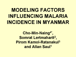 2 Department of Preventive and Social Medicine, Faculty of Medicine, Chulalongkorn University, Bangkok 10330, Thailand3 Faculty of Medicine, Chulalongkorn University, Bangkok 10330, Thailand4 The National Malaria Control Project (NMCP), Department of Health, Insein PO, Yangon, Myanmar.*Corresponding author |