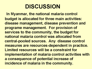 hypothesis. Any effective malaria control can only be assured if a regular budget is