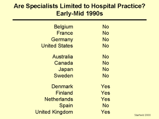 specialists are not limited to practice in hospitals. However, in Denmark, Finland,