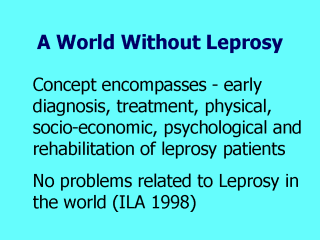 working for leprosy patients. This new concept was propagated by the International Leprosy
