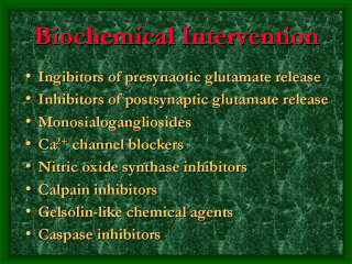 (Perez-Pinzon et al. 1997) Lamotrigine (3,5-diamino-6-(dichlorophenol)-1,2,4-triazine) is a phenyltriazine derivative that blocks voltage-gated Na+ channels and inhibits the ischaemia-induced release of glutamate. It is a commercially available, orally administered anticonvulsant with few side effects, although rashes and cases of Stevens-Johnson syndrome have been reported. (Bourgeois 1998, Dunn et al. 1999) Riluzole (2-amino-6-trigluoromethoxy benzothiazole) is a voltage-gated Na+ channel blocker that is also used clinically in cases of neurodegenerative diseases. It prevented ischaemic spinal cord injury in a rabbit model (Lang-Lazdunski et al. 1999), in another experiment animals treated with it had a better histopathological outcome after cardiac arrest. (Kanthasamy et al. 1999) Lubeluzole, a Na+ channel blocker that can inhibit the release of glutamate from ischaemic neurons, reducing postsynaptic excitotoxicity, may also inhibit postsynaptic nitric oxide synthetase activity. It has been shown in a rat model to improve the structural outcome for brain cells after global cerebral ischaemia. (Haseldonckx et al. 1997) Lifarizine is a similar substance that was found to be a promising neuroprotectant in an experimental setting (Brown et al. 1995), but clinical trials were discontinued on account of cardiac side effects such as hypotension and arrhythmia. (Squire et al. 1995) The voltage-dependent Na+ channel antagonist BW619C87 [4-amino-2-(4-methyl-1-piperazinyl)-5-(2,3,5-trichlorophenyl) pyrimidine]; has proved to a potent neuroprotectant, reducing the volume of hemispheric ischaemic damage by 51% at a dose of 50 mg/kg in a rat model. (Kawaguchi et al. 1999) Non-competitive NMDA receptor antagonists. In order to reach its binding site, a non-competitive NMDA receptor antagonist requires an ion channel to be opened up and the voltage-dependent Mg2+ block to be released by postsynaptic membrane depolarization. NPS-1506 is a non-competitive NMDA receptor antagonist with a moderate affinity to its receptor. It was found to be neuroprotective in a rodent model for ischaemic stroke, haemorrhagic stroke and head trauma, being less neurotoxic than MK-801. (Mueller et al. 1999) Dextromethorphan and its analogue AHN649 are relatively selective, low-affinity NMDA antagonists, and have been shown to have neuroprotective efficacy in a rat model utilizing temporal intraluminal filament occlusion of the middle cerebral artery. (Britton et al. 1997, Tortella et al. 1999) Aptiganel (CNS 1102) is a selective, non-competitive antagonist that acts on the ion channel associated with the NMDA receptor and has been shown to be neuroprotective in neonatal lambs after HCA. (Bokesch et al. 1997) Remacemide hydrochloride and its principal active desglycinyl metabolite are low-affinity non-competitive NMDA receptor antagonists. Remacemide hydrochloride was shown to be neuroprotective in an animal model of hypoxia and ischaemic stroke, and overall postoperative neurological recovery in a clinical prospective study of 171 patients undergoing aortocoronary bypass grafting (CABG) with CPB was more favourable in the remacemide group than in the controls. (Arrowsmith et al. 1998) Glycine site antagonists. Glycine, a major inhibitory neurotransmitter in the spinal cord and brainstem of vertebrates, is collected in the synaptic vesicles via a proton-coupled transport system and is released into the synaptic cleft after depolarization of the presynaptic terminal. It can participate in excitatory neurotransmission by modulating the activity of the NMDA subtype of the glutamate receptor. 7-Chlorokynuretic acid and its derivatives ACEA-1021 (Licostinel), ACEA-1031 and ACEA-1416 have also been found to reduce infarct volume in focal ischaemia models (Warner et al. 1995). Licostinel may be a safer and better tolerated neuroprotective agent than many of the previously evaluated NMDA antagonists. (Albers et al. 1999) Felbamate, a novel anticonvulsant that binds to the glycine site of the NMDA receptor, has been shown to have neuroprotective properties in vitro and in vivo. In a gerbil model of global ischaemia, felbamate given after carotid occlusion prevented delayed apoptosis, but the doses required to reach this effect were higher than those used for anticonvulsant treatment. (Wasterlain et al. 1996) Monosialogangliosides play important roles in the physiological pathways of the nervous system, particularly in the brain. GM1 has also been shown to reduce cerebral injury following 2 hours of HCA at 18°C. In an experiment with adult dogs, a better behavioural outcome and less neuronal injury was seen in dogs pretreated with GM1 than in the controls. (Redmond et al. 1993) Calcium channel blockers may reduce Ca2+ influx into cells after the activation of EAA receptors, and they also inhibit vasoconstriction after ischaemic insult (Lipton and Rosenberg 1994). Calcium antagonists have been shown to improve the neurological outcome after aneurysmal subarchnoidal haemorrhage. NO has been shown to mediate glutamate excitotoxicity, and the therapeutic potential of NOS inhibitors have been emphasized. (Barth et al. 1997) ARL17477, a selective NOS inhibitor, also provided some neuroprotection in a gerbil model, but the combination of MK-801 with ARL17477 provided 21% or 44% higher protection than either alone, indicating that several pathways contribute to ischaemic cell death and several agents targeting different points in the biochemical cascade may be of benefit (Hicks et al. 1999). One possibility for pharmacologically targeting a "downstream" event in the cascade is to inhibit activated calpain. The CNS-penetrating calpain inhibitor MDL 28,170 can reduce infarct volume in rodents (Markgraf et al. 1998), as also can another inhibitor Cbz-Val-Phe-H. (Hong et al. 1994) Gelsolin expression at normal levels protects the brain from acute ischaemic injury with its ability to stabilize CA2+ influx. Cytochalacin D is a partial gelsolin an