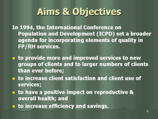control rapid population growth. As such, the ultimate objective of these programs (and