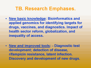 New and improved intervention methods: - Establishment of role of fixed-drug combinations (FDCs) and evidence base for public health use. Development of evidence base for effectiveness of TB preventive therapy in high HIV prevalence areas