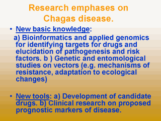 New strategy: a) Control of non-domiciliated triatomines. b) Development of strategies for control of expansion of infection within the Amazon region. c) New indicators for control programmes. d) Identification of determinants of effective implementation for Trypanosoma cruzi-safe blood programmes.