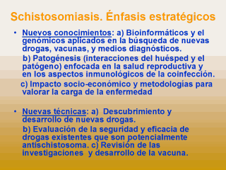 schistosomiasis intestinal. c) Optimización del praziquantel. (sólo o en