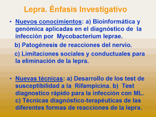 Nuevas estrategias: a) Desarrollo de estrategias para la integración de la terapia multidroga en la generalidad de los servicios de salud. b) Modelación del impacto y los patrones de transmisión. |