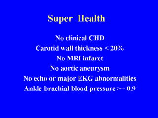 Cardiovascular Health Study, we measured subsclinical atherosclerosis. As a control group, we set super health: free of atherosclerosis. Unfortunately, in our analyses in the CHS, we can not find enough number of super healthy men. Accordingly, the following data are mainly among women. When we examined these risk factors in relationship to heart disease in men, only three things can predict heart attack in men. - Extent of subsclinical disease Lipoprotein levels are not predictive in older men. In women, the story is different. |