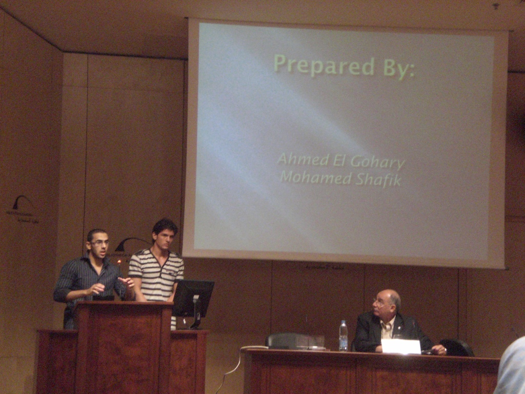 The second presentation was about something that we use every day in our daily life, Oil. Ahmed El Gohari and Mohamed Shafik explained how oil is extracted from beneath earth. They explained the types of soils that could contains petrol as well as they types of drills and rigs and how the drilling process is done.