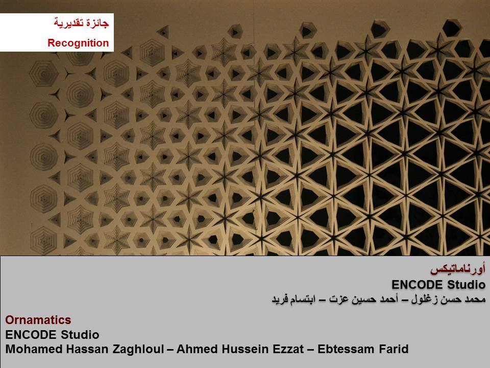 أما الموضوع الثاني من جائزة هذا العام فكان عن مشروعات العمارة الداخلية والتصميم التي يتحقق فيها الإبداع في خلق وتشكيل فراغات داخلية متناسقة تلبِّى احتياجات الإنسان المعيشية والوظيفية وأيضا عناصر الفرش الداخلي، ورأت لجنة التحكيم ان تحجب الجائزة الذهبية، وأن تمنح جوائز تقديرية لكل من استوديو إنكود (محمد حسن زغلول - أحمد حسين عزت - ابتسام فريد) عن مشروع أورناماتكس ، وسامر محمد عادل السياري عن مشروع: مكعب روبيك، وليلى عمر بدوى عن مشروع: مفاجأة ليلى للتدوير.