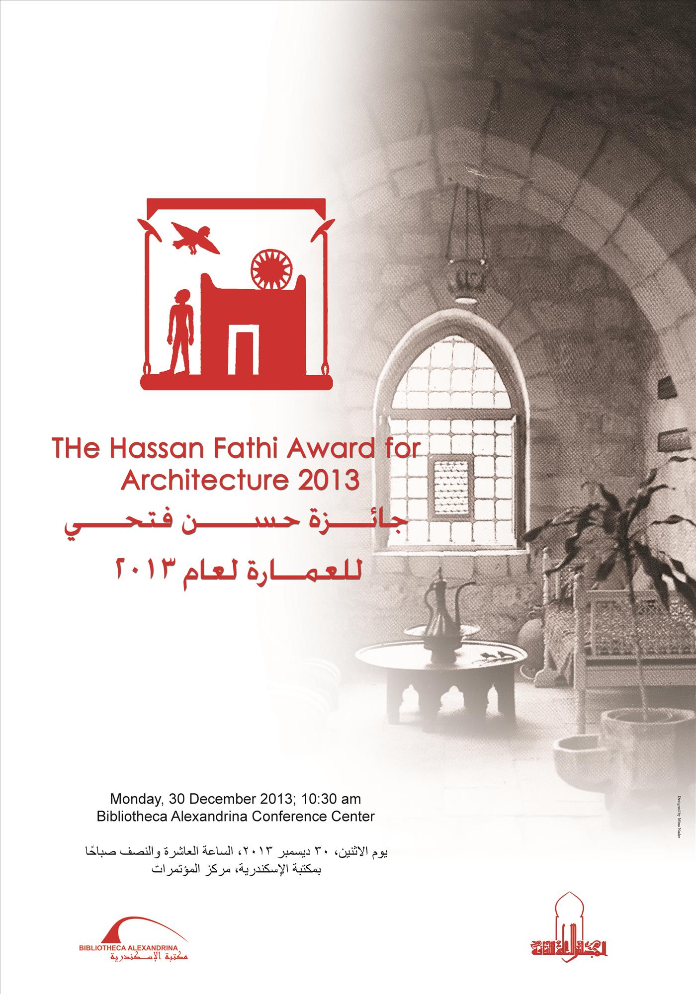 اعلنت مكتبة الإسكندرية ولجنة العمارة بالمجلس الأعلى للثقافة فى 30 ديسمبر 2013 عن نتيجة جائزة حسن فتحي للعمارة للعام 2013. تهدف الجائزة إلى الارتقاء بالعمارة المصرية المعاصرة ونشر الوعي الثقافي بالعمارة وأهميتها في المجتمع، وأيضاً تشجيع وتكريم وتقدير المهندسين المعماريين المصريين.