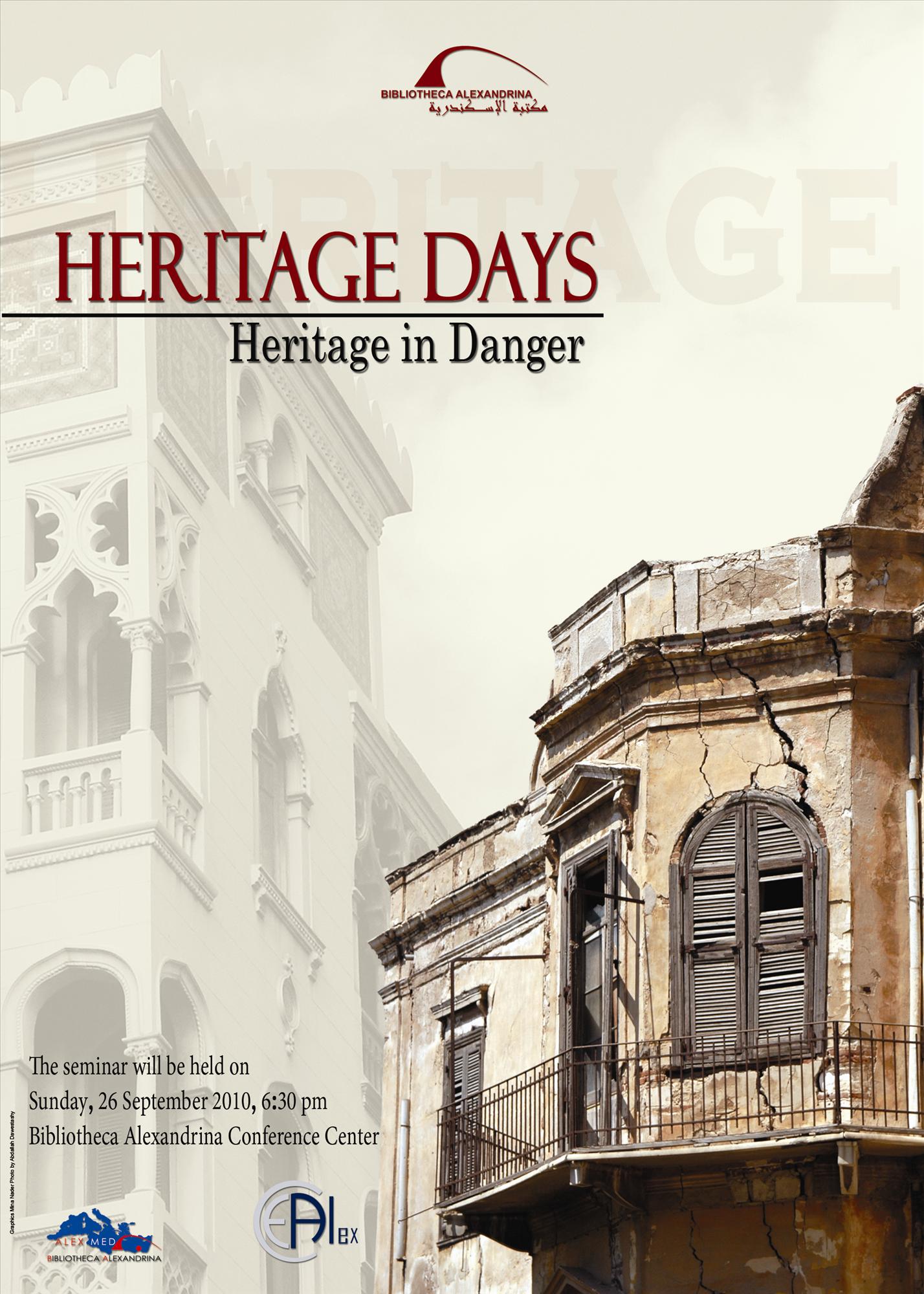 On 26th September, 2010, Alex Med along with CEAlex organized together a Seminar “ Heritage in Danger” as part of Heritage Days at the Conference Center, Bibliotheca Alexandrina at 6.30 pm.