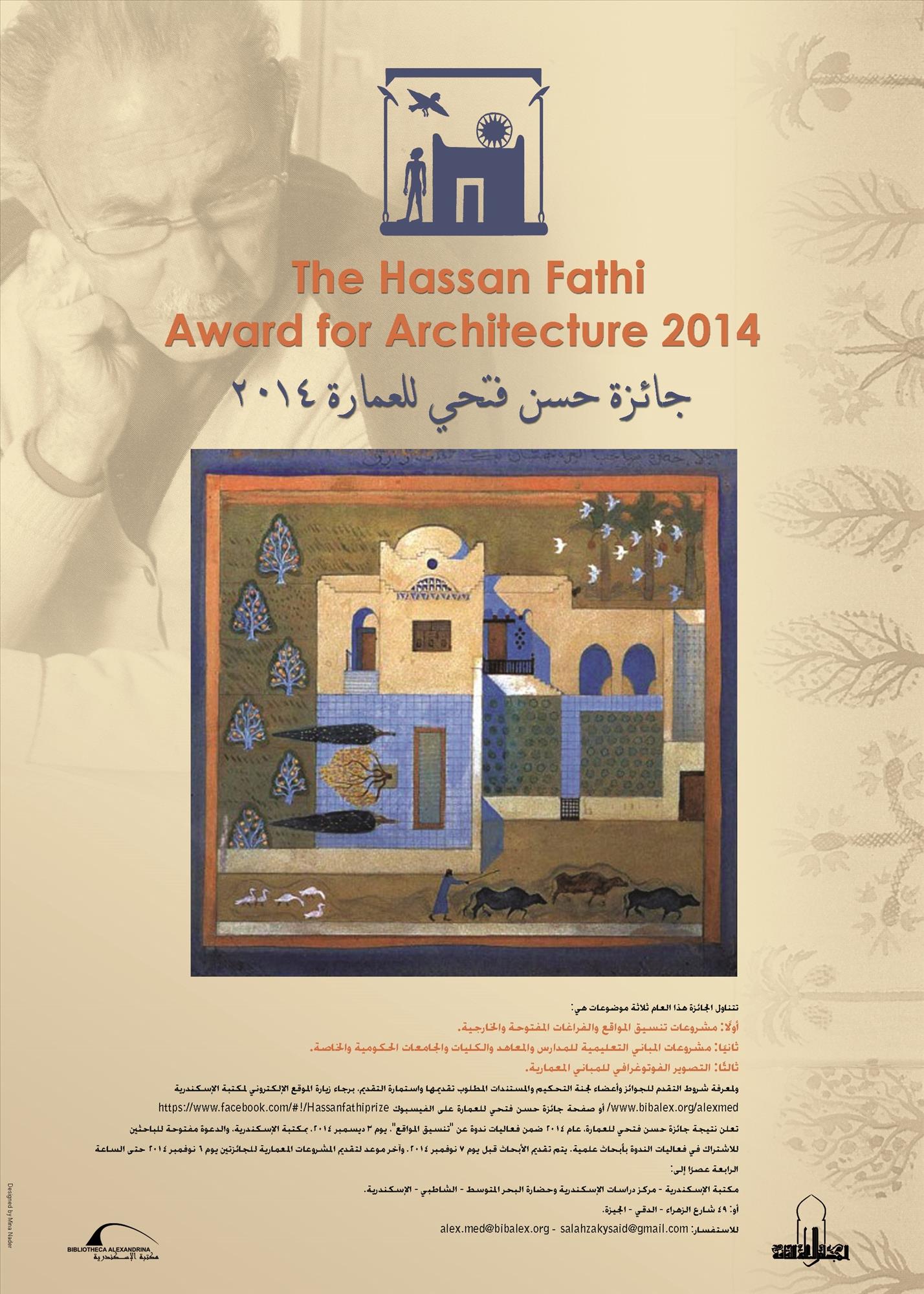 تعلن مكتبة الاسكندرية ولجنة العمارة بالمجلس الاعلى للثقافة عن جائزة حسن فتحي للعمارة لعام 2014. تتناول الجائزة هذا العام الموضوعات التالية: