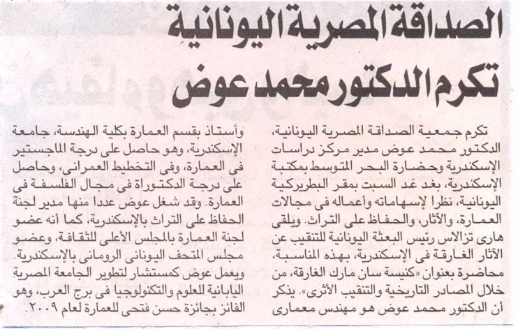 Greek-Egyptian Friendship Association October 07, 2010 Ahram Massai