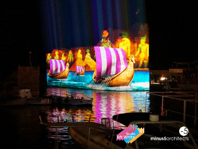 The first projection of a videomapping on the ancient port of Byblos, Lebanon, July 2013
