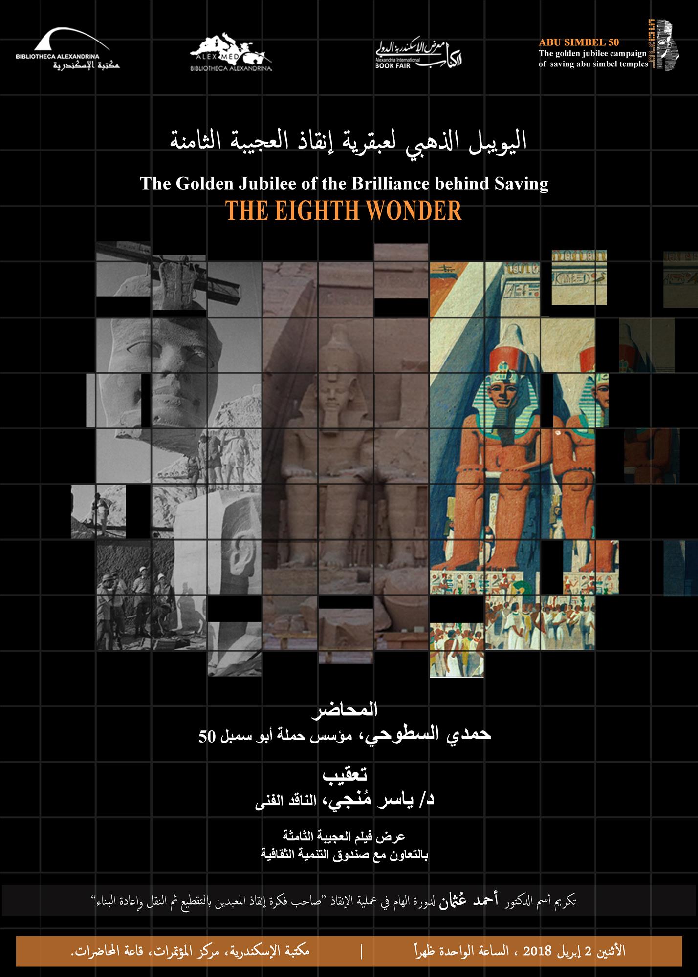 تضمن برنامج الاحتفالية محاضرة للمعماري حمدي السطوحي، مؤسس حملة أبو سمبل 50، عن عبقرية إنقاذ معبدي أبو سمبل، وبالتعاون مع صندوق التنمية الثقافية تم عرض فيلم العجيبة الثامنة للمخرج العالمي جون فيني، وفكرة وموضوع الدكتور ثروت عكاشة، والذي كان مفقودًا لأكثر من ٤٠ سنة وتم استعادته، والذي يوثق لوحات الفنان حسين بيكار عن أبو سمبل قبل وبعد الإنقاذ، ويحتوي الفيلم على 80 لوحة والعديد من الاسكتشات. الجدير بالذكر أن بيكار ينتمي إلى الجيل الثاني من الفنانين المصريين وتتميز لوحاته الزيتية بمستواها الرفيع في التكوين والتلوين وقوة التعبير.