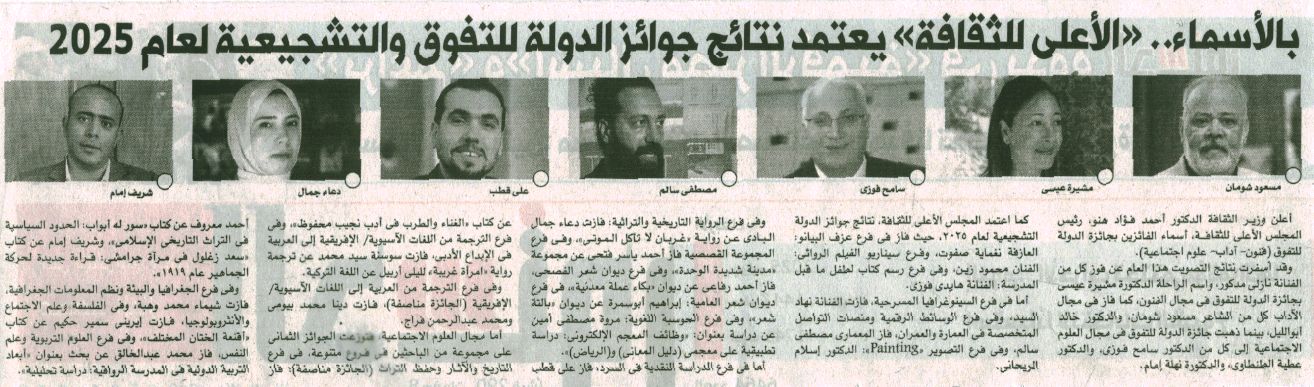 30 يوليه 2025 بالأسماء.. "الأعلى للثقافة" يعتمد نتائج جوائز الدولة للتفوق والتشجيعية لعام 2025 الدستور