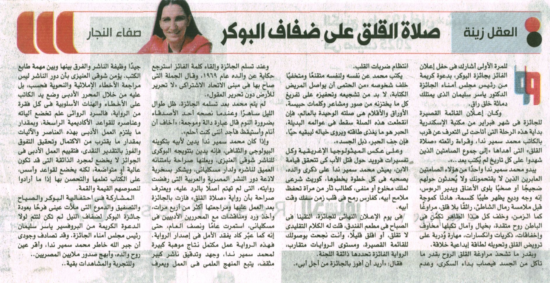 رواية "صلاح القلق" لمحمد سمير ندا تفوز بجائزة البوكر العربية