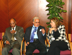 من اليمين: الدكتورة أفكار الخرادلي، والصحفي منير عامر، والدكتور عبد المعطي بيومي