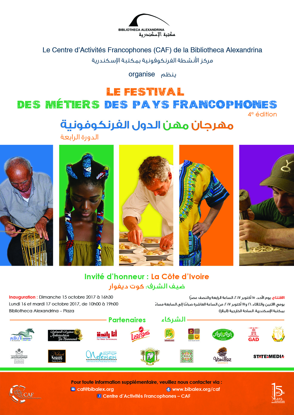 Le Centre d’Activités Francophones (CAF) de la Bibliotheca Alexandrina organise Le Festival des Métiers des Pays Francophones 4e édition avec comme invité d’honneur la Côte d’Ivoire.