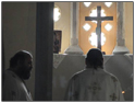 [Pilgrim prays in front of the Cross of Saint Andrew]