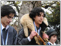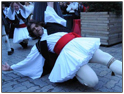 [Musician from Mykonos playing the traditional tsabouna on his way to the feast of Saint Kyriaki]