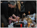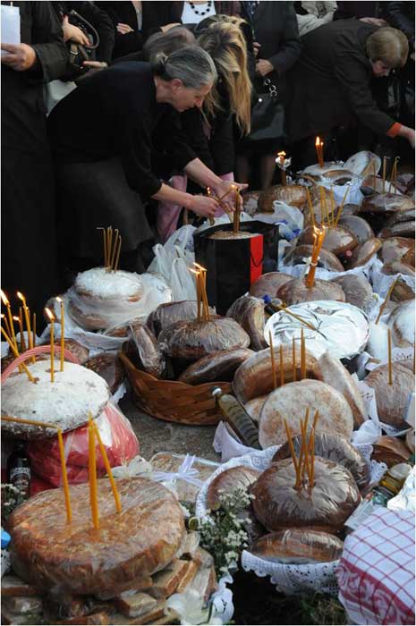 [The pilgrims celebrating the Saint Kyriaki on the light of candles]