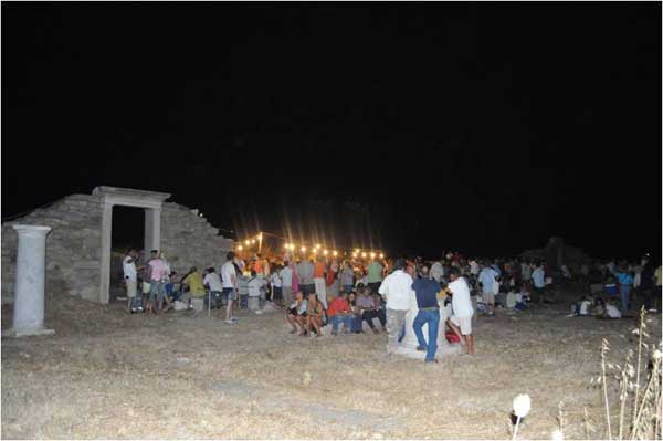 In the middle of the Aegean is an island sacred to the ancient Greek world: Delos, birthplace of the god Apollo. According to the myth, Delos the birthplace of Apollo is a city of music, dance and songs even during the sacrifices rituals the sacred choir of women continued to chant. Today the island is uninhabited but a small chapel dedicated to Saint Kyriaki, was built in the early twentieth century among the ruins of the stadium district, in the region where there was the sanctuary of the legendary founder and first King of Delos. The sixth day (day sacred to the goddess Artemis sister of Apollo) of July (month sacred to the goddess Aphrodite) is the day of the feast of Saint Kyriaki "athléphore". The authorities exceptionally allow the visit to the site for the feast.