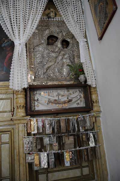 [The Virgin with votive offerings in Panaghia Spiliani, Samos, Grece]