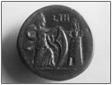 [Coin minted in Alexandria depicting Isis Pharia holding a sail in front of the Pharos]