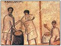 [Saint Menas’ flask bearing his image dressed as a Roman soldier between two camels. It contained the miracle water that pilgrims took with them as a souvenir of their pilgrimage, Greco-Roman Museum of Alexandria]