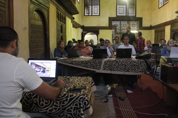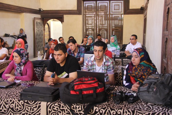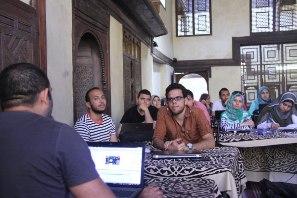 The Bibliotheca Alexandrina organized its first Creativity Youth Forum from April 28-29, 2014, in the framework of Support to Cultural Diversity and Creativity in Egypt, a program co-funded by the European Union and orchestrated by the Bibliotheca Alexandrina (BA). Hosted by the Bayt Al-Sinnari center for Science, Arts and Culture in Cairo’s Sayeda Zeinab district, the event brought together thirty participants from various governorates in Egypt, including Beheira, Gharbia, Qenna, Asiut, Beni Suif , Luxor, Port-Said, Minya, Sohag, Kafr El-Sheikh, Menoufia, Fayoum, New Valley, Qualyubia and Cairo. Throughout the Forum, participants attended graphic design workshops aimed at enhancing their skills and creative thinking. The workshops provided a hands-on experience covering various artistic principles and practices in the field, including graphics and advertising, color theory, Photoshop video editing in advertising and Adobe After Effects. At the end of each day, participants were asked to complete a project implementing the skills that they learned. One of these projects consisted of using Photoshop to develop a poster promoting the culture in their specific governorates. In addition to the graphic design workshops, participants attended the “Culture of Dialogue” workshop designed to stimulate discussions on ways to enhance dialogue and cooperation in the service of promoting and preserving cultural ,heritage.