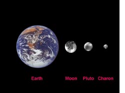 Fig (2) The relative sizes of the Earth, Pluto, Charon and the Moon