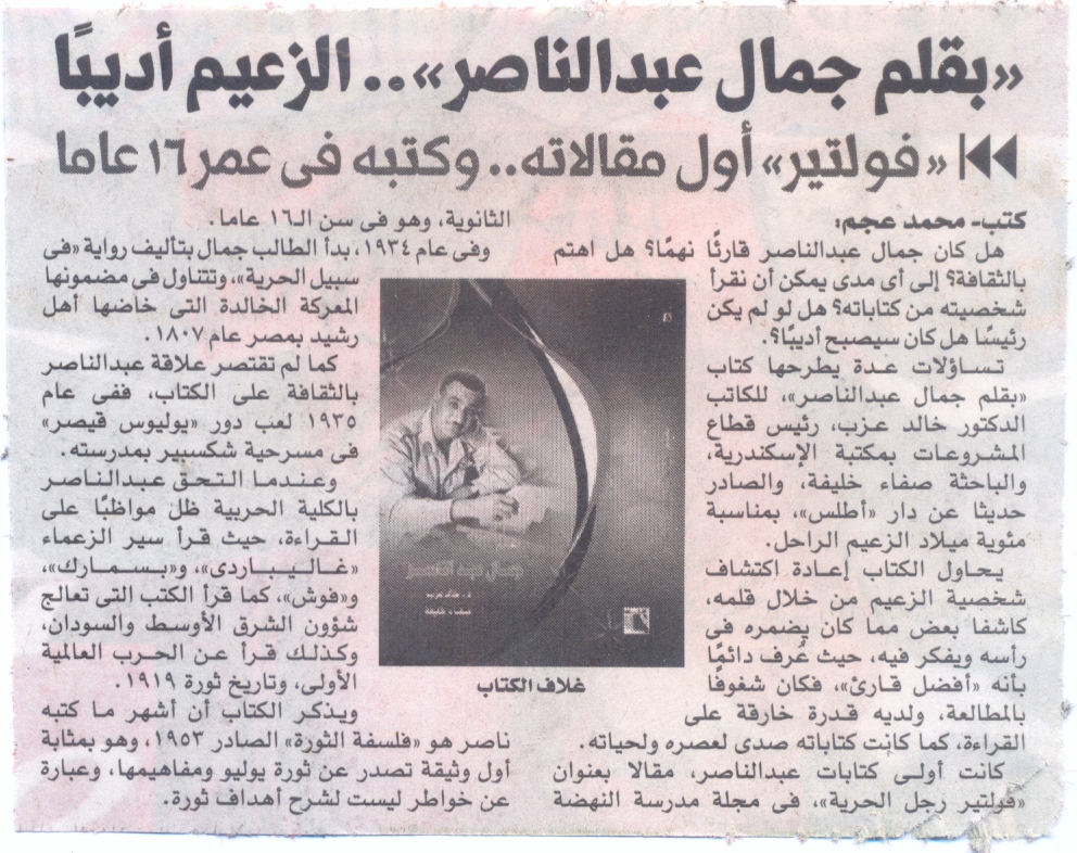 "بقلم جمال عبد الناصر"..الزعيم اديبا