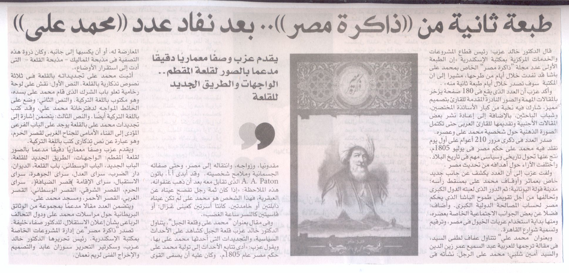 طبعة ثانية من"ذاكرة مصر"..بعد نفاذ عدد"محمد علي"