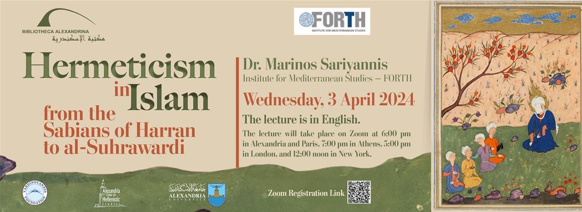 The lecture will take place on Zoom at 7:00 pm in Athens and Alexandria, 6:00 pm in Paris, 5:00 pm in London, and 12:00 noon in New York.