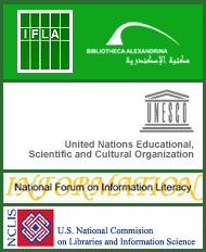 UNESCO, the International Federation for Library Associations and Institutions (IFLA), and the National Forum on Information Literacy (NFIL) are co-sponsoring an international meeting of information literacy and lifelong learning experts drawn from all six of the major geographic regions of the world, for the purpose of sharing ideas and promising approaches on how information literacy is being introduced and implemented in their respective regions and countries. From the discussions hopefully a consensus can be reached as to the most promising ideas and approaches that could have broader application and utility beyond a single region or country, and be utilized and extended into multiple regions and countries, and, perhaps in a few instances, be adopted worldwide. |