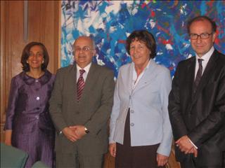 Dr Noha Adly, Dr Ismail Serageldin, Mrs Catherine Bréchignac and a representative from the CNRS on the event of signing the agreement of partnership between the BA and CNRS